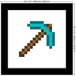 Trends International Gallery Pops Minecraft: Iconic Pixels - Items - Diamond Pickaxe Wall Art Wall Poster, 12" x 12", Black Framed Version