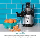 A powerful 400-Watt motor extracts all the juicy nutrition from your favorite fruits and veggies. A roomy 2-inch feed chute fits larger chunks of your favorite ingredients. Translation: less chopping, more juicing. We keep it tidy with top-rack dishwasher-safe attachments and a silicone spout cap that catches drips before they hit your countertop. Juice directly into our 16-oz cup, which comes with a twist-on to-go lid for spill-free sipping and portability. This juicer takes up way less space than standard models, making it a breeze to keep on the countertop or tuck away for later. Includes 1 year limited warranty. NOTE: Refer to User Manual before use Product built to North American & Canadian Electrical Standards
