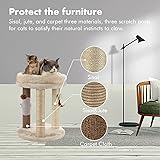- MECOOL 4in1 Small Cat Tree,Scratching Post with Tower Soft Cat Bed,High Quality Sisal Carpet Jute Posts with Three Hanging Ball Toys and Massage Brush for Indoor Cats and Kittens(Beige)