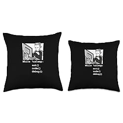 100% Polyester While !asleep: eat() code() debug() Perfect gift idea for your friends, boyfriend, girlfriend, husband, wife, parents, mother, mom, dad, papa, father in law, kid, son, daughter, brother, sister, uncle, aunt, grandpa, grandma on Birthday or Christmas. 100% spun-polyester fabric Double-sided print Filled with 100% polyester and sewn closed Individually cut and sewn by hand Spot clean/dry clean only