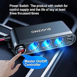 - EUGIZMO 12V Cigarette Lighter Socket Splitter 3 Socket Multi Port Car Cigarette Lighter Plug Adapter & LED Voltage Display & Master Controller 【Key Features】【7 in 1 12V Cigarette Lighter Socket】 Equipped with 4 charging ports and 3 cigarette lighter splitter sockets, provides 200W power in total.;【Super Fast USB Charging】 The cigarette lighter splitter adapter built-in smart IC chip, with 1pc USB C (PD 30W) & 1pc QC 3.0 (18W) port, and 2* 5V/2.4A USB ports (Max 15W) to maximize your device charging speed, providing 5X faster than normal car phone charger;【LED Voltage Display】 This 12 volt car power usb outlet with the real-time LED voltage display to monitor the output of the car battery, keeping abreast of car battery health in real time;【Powerful Safety Protection】Built-in a smart control chip and complete protection circuits, prevent the car power splitter and your devices from overheating, overloading or short-circuiting;【Wide Compatibility】 This cigarette lighter usb charger is widely used in 12-24V vehicles, like SUV, Truck, MPV, RV, off-road and other vehicles. And applied to a variety of automobile gadgets, including GPS, Dash Cam, Vacuum Cleaner, Car Fridge, Heated Seats, and Sat Nav, etc. Besides, it's compatible with most of USB power devices, including iPhone, Samsung, Huawei, Macbook, Switch, iPad, Airpods, Tablet, Kindle, Motorola, TCL, LG, Sony, Android phones, etc; 【Package Includes】 1 x EUGIZMO Car Charger Splitter with Plug Outlet2 x Sticky Sticker2 x Micro-blade Fuse (15A)1 x User Manual
