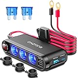 7 in 1 Cigarette Lighter Socket : Our 12v cigarette lighter socket equipped with 1* Type-C (PD 30W) port, 1* QC3.0 (18W) port, 2* 5V/2.4A USB ports (total Max 15W), and 3* cigarette lighter sockets, enables rapidly charge 7 devices simultaneously. And built-in smart IC chip that can intelligently detect your devices to deliver its fastest charging speeds, perfect fit for GPS, Dash Cam, Vacuum Cleaner, Refrigerator, Hot Water Kettle, Seats Heated Cushion, Air Purifier and Sat Nav, ect 3 Socket Cigarette Lighter Splitter : This 12v cigarette lighter plug splitter built with 3 cigarette lighter sockets, provides a total output power up to 120W (12V)/ 200W (24V), with eyelet terminals that can easily turn any 12-24 volt battery into an auxiliary 12-24 volt port. Enough for charging various USB-C & USB-powered devices, like iPhone, iPad, iWatch, Laptop, Camera, Google Pixel, Macbook, Nintendo Switch, Samsung Galaxy, Huawei, Xiaomi, Motorola, LG, Sony, etc With LED Voltage Display & Master Power Switch : The led display of the 12v car power outlet socket helps monitoring your car battery voltage in real time. Moreover, the led display will flash to remind you if the car battery voltage is too high or too low, ensuring you a safe driving. Besides, the 12 volt power outlet Master Power Switch allows you to control all your devices on/off with just one click, keeps your vehicle battery life safe With Flexible & Adjustable Cord : The 12v power supply car plug outlet built with a 3m/ 10ft length cable, convenient for using in the remote locations or outdoors. The terminal of the pure copper eyelet internal diameter 8.4mm/ about 0.32 inches). The Red cable connect to car power supply positive plus/ +, and the Black cable connect to power supply negative minus/ -, easy to operate. It can be used for all devices with a cigarette lighter socket power supply Why Choose EUGIZMO : Our 12v cigarette lighter socket plug is officially certified by CE, FCC, UL & RoHS. You will get: 1X Cigarette Lighter USB Charger 3 Socket; 2X Micro-blade Fuse (15A); 2X Sticky Sticker; 1X User Manual.