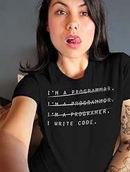 - I'm A Programmar - I'm A Programmor, I'm A Programer... I Write Code - ShirtInvaders funny vintage adult humor tees are the perfect blend of style and comfort. These shirts not only showcase hilarious and unique designs but also show a bit of vintage charm with their custom distressed look. Crafted from soft-style fabric, our shirts guarantee all-day comfort and a perfect fit. Whether you're looking to add a touch of wit to your wardrobe or aiming to stand out with a conversation starter, our shirts are the ideal choice. This shirt is available in two style options, a unisex modern fit tee or a tapered women's fit tee. Available sizes range from Sm-5X and we offer several color options to choose from. All orders are processed within one business day and usually arrive much earlier than expected. This design was created by ShirtInvaders and custom screen printed in our Texas production facility using only the highest quality materials. Eco-friendly, softened plastisol or water based inks are used to create a vibrant design that is soft to the touch and very easy to wear.