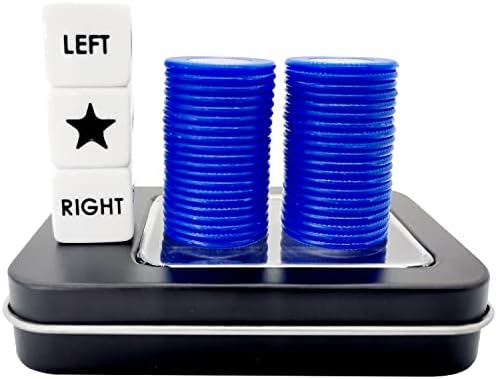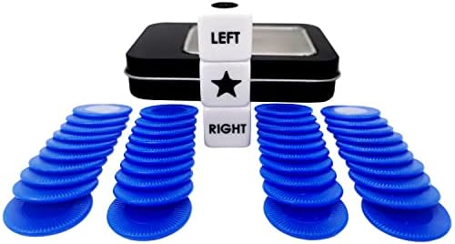 Ahoper Left Right Center Dice Game Prime Set with 3 Dices + 40 Chips. Left on The Product Means Pass 1 chip to The Left, Right on The Product Means Pass 1 chip to The Right.(Blue)