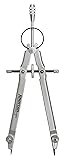 Versatile technical drafting compass is ideal for scribing arcs and circles Precision metal body Adjustable center wheel for measuring up to 9.5" diameter Steel point ensures accurate position Spring bow head and center wheel locks legs in desired location