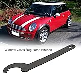 - Feature: 1. Fitment: The window glass regulator wrench is a replacement forR50 2002?2006, forS JCW 2002?2006, forConvertible S JCW R52 2005?2008, for 1 Series E81 E82 E88. 2. Function: This wrench fits between the front door glass and outer door to allow you to loosen the large glass nuts to remove the door glass in order to remove the window regulator. 3. : Specially designed to adjust the window seal tightness of the window regulator, when you put the glass back in, use this wrench to tighten the nuts back on the regulator. 4. Material: The wrench is made of carbon steel and has the original metal finish with a hole at the end for attaching a 3/8 driver if you need more leverage when loosening. 5. Fine Workmanship: Professional manufactured, exquisite workmanship with unique design, ensure stable performance and high reliability. Specification: Item Type: Window Glass Regulator Wrench Material: Carbon Steel Fitment: Fits for Cooper R50 2002?2006 Fits for Cooper S JCW 2002?2006 Fits for Cooper Convertible S JCW R52 2005?2008 Fits for 1 Series E81 E82 E88 Package List: 1 x Window Glass Regulator Wrench