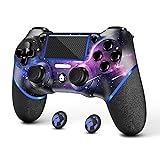 • AceGamer Wireless Controller for PS4 with 2 Thumb Grips, 3.5mm Audio and Turbo Function, Purple Galaxy Custom Design V2 Gamepad Joysticks for PS4, Compatible with PS4, Slim, Pro and Windows PC
