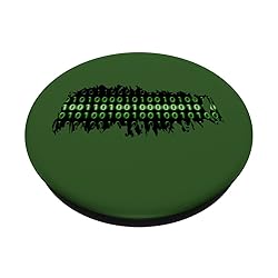 Green binary code appears behind worn clothe featuring artificial neural network intelligence algorithm programming for next generation of humanoid human robots! Fun gear for scientists, students, teachers, engineers, computer programmers, data scientists! Great gift for Hour of Code, Computer Science Education Week, International Computer Science Day, World Computer Day, National IT Professionals Day, IT Day, Informational Technology Week, Thanksgiving, Christmas, New Year, Holidays! PopGrip with swappable top; switch out your PopTop for another design or remove it completely for wireless charging capabilities. (Not compatible with Apple MagSafe wireless charger or MagSafe wallet.) Expandable stand to watch videos, take group photos, FaceTime, and Skype handsfree. Advanced adhesive allows you to remove and reposition on most devices and cases. Note: Will not stick to some silicone, waterproof, or highly textured cases. Works best with smooth, hard plastic cases. Will adhere to iPhone 11, but not to the iPhone 11 Pro nor the iPhone 11 ProMax without a suitable case.