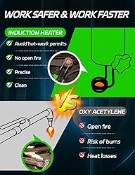 30S Fast Heating: This induction heater quickly heats metal with electromagnetic fields, offering faster, more precise results than oxy-acetylene systems. The operation enhances safety and is designed for controlled, reliable use Versatile Applications: Perfect for loosening nuts, rusted bolts, and heat-treating small metal parts in automotive repairs and machinery maintenance. It offers broad functionality to meet various needs Built-in LED Lighting: A high-intensity LED light provides ample illumination, ensuring clear visibility even in low-light conditions. The indicator changes from white to yellow when the device is in overheat mode, making monitoring simple Smart Cooling System: Equipped with a cooling fan and overheat protection, this system helps protect sensitive components during heating, extending the device's lifespan. The fan operates automatically, ensuring ease of use Multiple Coil Sizes: Includes 12 different coils to meet various work requirements, A convenient toolbox is provided for easy storage and portability, This makes it more convenient than using a torch