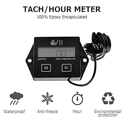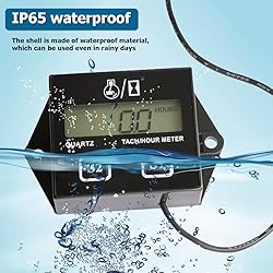 【Wide Application】: The backlight digital hour meter is widely used for any 2 or 4-stroke gasoline engine such as motorcycles, ATVs, boats, outboards, lawn mowers, UTVs, snowmobiles, pit bikes, generators, tractors, scooters, golf carts, mopeds, etc. 【2-in-1 Multifunction】: It includes two functions, tachometer and hour meter, which can display both engine speed and running hours. It helps you track the engine working hours and record the engine RPM to improve the efficiency of your work and save time. 【Waterproof & Durable】: The tachometer is extremely well sealed and 100% waterproof, effectively avoiding any liquid infiltration that could cause a short circuit. High-quality raw materials make it very durable, able to resist strong shocks and vibrations, even if it is dropped from a high place will not be easily broken. 【Easy to Install】: This digital tachometer is very easy to operate. You just need to tie the connection wire to the spark plug and you're done. The hour meter can diagnose the life of your vehicle for oil changes, valves, tune-ups, spark plug changes, etc. 【Buy with Confidence】: Our team have the formidable design research and development ability, the extremely strict management and the quality control system. If you have any product problems or installation problems, please feel free to contact us, we promise to always provide satisfactory solutions and serve you.
