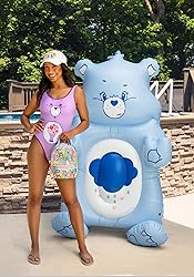 - Floats for adults and kids have never been more fun than with the Care Bears Grumpy Bear Pool Floaty. Dive into a world of leisure and amusement with this distinctive pool accessory. As a floaty for adult use, it not only injects a dash of whimsy into your poolside activities, but also offers a cozy floating experience. Constructed from sturdy plastic, this inflatable raft is engineered to endure the demands of regular use. The Grumpy Bear graphics on the raft are more than just a playful touch, they are a reflection of the meticulous attention to detail that has been invested in the creation of this floaty. Inflatable rafts for adults are designed to comfortably accommodate one person, and this floaty is no exception. Whether you're basking in the sun or simply enjoying the water, this floaty ensures that you do it with flair and comfort. Exclusively crafted by us, this water toy is a reflection of our dedication to quality and customer satisfaction. With this gloomy bear floaty, you're not just purchasing a pool accessory, you're investing in a product that delivers on its promise of fun and relaxation. Measuring 70 L x 45 W, the Care Bears Grumpy Bear Pool Floaty is the perfect size for any pool. This matters because it ensures that the bears-themed floaty will fit comfortably in your pool without occupying too much space.