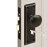- Replace Broken Antique LocksetOverview:An ideal replacement for vintage handlesets featuring a mortise lock and classic skeleton keys, perfect for period homes. This lockset is designed for interior doors with a thickness ranging from **1-3/8" to 1-3/4"** and a backset of **2-3/8"**.Retro Vintage Steel Knobs- Design: Adorn your old-fashioned bedroom, bathroom, and other interior doors with elegance, featuring classic oil-rubbed bronze plated steel trim plates and vintage steel knobs.Product Dimensions- Doorknobs: Each steel doorknob measures 2-1/4 inches.- Escutcheon Plates: Dimensions are **7-in x 2-1/4-in- Faceplates: Each faceplate measures **5-1/2 in x 7/8-in- Mortised Bore Hole: Requires a **9/16-in x 3-9/16-in** mortised bore hole on the edge of the door.Non-handed Installation- Versatility: The mortise lock assemblies are suitable for both left and right-handed interior doors by simply flipping the locking tab.- Ease of Installation: Quick and easy installation requiring only a few tools. All necessary mounting hardware, installation instructions, and templates are included.Note: For further dimensional information, please refer to the line drawing before making a purchase.