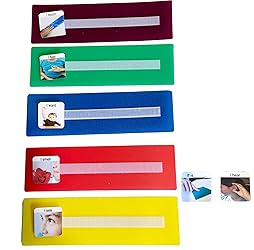 Enhance your child's communication skills with this colorful sentence strip and 7 sentence starter cards from smile4autism. The multicolor strip and cards are perfect for children of all ages and can be used anywhere, anytime. The sentence starter cards help children communicate and build their vocabulary, express their wants, and thoughts clearly. Get your child's communication skills boosted with this fun and interactive tool! This kit includes 5 sentence strips, one in each of the following colors: blue, purple, green, yellow, and red. Each Sentence strip measures 2 1/4" X 8" inches. Kit come with 7 sentence starter cards, making it effortless to construct sentences for language learning. It includes, I want, I see, I feel, I hear, I smell, I touch, and It is. Constructed with strong, resilient poly materials, these 5 sentence strips are designed to withstand wear, tear, and moisture. Dual Sided : each strip in this set features a soft fuzzy side and a hard rough side, ideal for utilizing both types of Velkro. If need more loose cards option, please Look at my store for other add-ons or cards that will pair perfectly with this set.