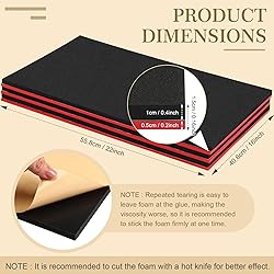 Package Includes: you will receive 3 sets of toolbox foam inserts, each has a red bottom and black top, enough quantity can meet your daily use and replacement needs, or you can share them with your family and friends 2 Colors Design: the toolbox accessories adopt the black top and red bottom design, contrasting colors can help you identify your missing tools instantly, and they also allow you to easily put your tools back in the right place, and it's easy for you to find what you want Adjustable Size: the size of the tool storage organizer is about 16 x 22 inches, and you can adjust the size according to your needs; You can outline the size of your tool on the black surface with a water pen, then cut it with a hot knife, tear off the backing paper, and stick the black foam with the red foam, then you can put in your toolbox and arrange the tools (toolbox and tools are not included); It is recommended to cut the foam with a hot knife for better effect Strong and Reliable: the adjustable tool chest insert is made of EVA foam material, not easy to fade and break, reliable and strong to use, besides, the black adhesive surface has sufficient stickiness and is not easy to fall off when sticking to the red foam; Repeated tearing is easy to leave foam at the glue, making the viscosity worse, so it is recommended to stick the foam firmly at one time Convenient to Carry: the foam tool box inserts fit many types of toolboxes, so they won't bump into each other inside, easy for you to carry when you go out to do some work outside, they can also be applied to cabinets and chests of drawers, convenient to use