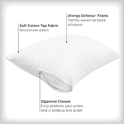 100% Cotton ALLERGY DEFENSE FABRIC: Tightly-woven construction blocks unhealthy household allergens from passing through the fabric and collecting in your pillow. ODOR NEUTRALIZER: Keeps your pillow fresh and clean. 100% COTTON: Breathable cotton is soft and comfortable. ZIPPERED CLOSURE: Durable zipper fully encases your pillow.