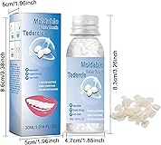 - Choose our dental restoration kits for a simple and confident smile! Safe & Natural: 1. Realistic look & feel, comfortable & no foreign body sensation. 2. The restoration kit is made of thermoformed beads made of environmentally friendly polymer plastic, with safe quality. Versatile & Easy to Use: 1. Can be used for broken teeth, large gaps, uneven teeth & missing teeth, you can DIY repair all kinds of teeth. 2. You can do it manually at home, it is easy to use, saving time & money. How to Use: 1. Depending on the size of the missing tooth, put it in boiling hot water. 2. Stir the ingredients with a spoon a few times to mix the ingredients. After mixing, it can be shaped like plasticine. 3. After a minute or so, the white particles become translucent and you can shape the teeth. Additional material can help restore the back of adjacent teeth. 4. After cooling at room temperature, the material becomes hard. It can be worn over missing teeth and rinsed with cold water to speed cooling. 5. If the denture has fingerprints, it can be lightly polished with fine sandpaper after molding. Kind Tips: 1. For external use only, please do not swallow. 2. Children under the age of 18, the elderly, pregnant women & lactating women should use with caution. 3. Do not use if you are allergic to any of the ingredients. If you have any questions about our products, please feel free to contact us & we will reply as soon as possible.