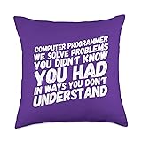 100% Polyester Great present for any family member or friend that would enjoy this type of design! Funny Computer Programmer Design Coding Programmers Humor Funny Computer Programmer Design Coding Programmers Humor 100% spun-polyester fabric Double-sided print Filled with 100% polyester and sewn closed Individually cut and sewn by hand Spot clean/dry clean only
