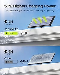 [ 16.4ft Cord Separate Installation ] The white motion sensor outdoor lights connected by a 16.4ft extension cord, the solar panel and light can be installed in different locations, with the solar panel absorbing most sunlight and light illuminating where light is needed. For backyards or areas that are shaded during the day, the solar light with a long extension cord can position the solar panel in a sunny spot like the rooftop and light up the darkness at night. [ 113 Lensed Bright LEDs ] The dusk to dawn solar flood light has 113 densely embedded LED units, each covered by a convex lens to focus the light distribution to the same direction, so the entire solar spot lights gives off bright concentrated light rays down to the ground without much fading. The cool white bright light boosts visibility and contrast at night so you can see everything clearly. [ Motion Sensor & 3 Lighting Modes ] The solar motion sensor light has a sensitive PIR motion sensor to turn on 20s of bright light when sensing the movement of humans, animals, or vehicles in a 22ft/120° range. Press the switch behind the solar outdoor light to cycle between 3 working modes: OFF-to-Bright when sensing movement, ALWAYS ON from dusk to dawn, and Dim-to-Bright when sensing movement. Recommended light installation height: 6-9 ft. [ High-Power Solar Panel ] Our solar lights powered by a solar panel as big as the light, the 1500mAh rechargeable battery gets enough charge for a whole night’s illumination. Even on cloudy days with weak or intermittent sunlight, the high-power solar panel can still recharge at a fair speed. Light up your backyard with 0 electricity bills added. [ Easy Installation & IP65 Waterproof ] JACKYLED’s innovative slide-in mounting bracket simplifies the installation process down to 2 steps: mount the bases with screws and anchors, then slide in the connected light and solar panel. IP65 wet-rated, the solar light for outside boasts outstanding outdoor reliability and durability against all weather conditions, like rains, frost, winds, and storms. Backed with a 1-year warranty.
