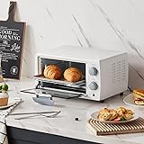 COMFEE' Countertop Oven, Small Toaster Oven Combo 4 slice, Mini Oven for 9" Pizza, Compact Oven, Bake, Broil, 950W, White, CTO-E101A(WH)
