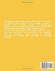 - This book offers a hands-on journey through Java programming, with a strong focus on its Object-Oriented features. Instead of starting with the usual basics like conditionals and loops, students dive straight into creating classes and objects inspired by real-world scenarios. Through a carefully crafted series of exercises, learners explore key OOP concepts in Java—including inheritance, polymorphism, file handling, database access, and user interaction. Each topic is introduced progressively, with exercises that grow in complexity to match the learner’s developing skills.