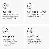 Dyson's most powerful cordless vacuum. Over 115% more power.¹ Up to 70 minutes of run time.² Power button operated for continuous cleaning. Intelligently adapts power based on debris and floor type detected. Bars on the screen grow and shrink in real time according to the volume of particles removed as you clean – showing you when to move to another area.³ The LCD screen displays a summary of how much dust you have picked up at the end of each clean.³ Also displays power mode, maintenance alerts, and remaining run time to the second. Reveals 2x more invisible dust on hard floors.⁶ Dyson’s improved illumination technology uses a precisely angled light to reveal the microscopic dust and dirt you can’t normally see on hard floors. 2 Advanced cleaner heads. The Fluffy Optic cleaner head reveals hidden dust. Gentle on hard floors but tough on dirt. The Digital Motorbar cleaner head deep cleans all floor types and de-tangles long hair and pet hair as you clean. Traps viruses.⁴ Advanced whole-machine HEPA filtration. Traps 99.99% of particles as small as 0.1 microns.⁵ Expels cleaner air. Converts to a handheld vacuum. With the built-in Crevice and dusting tool for continuous cleaning. Comes with 4 Dyson-engineered accessories to clean up high, down low, and everywhere in between. Includes the innovative Hair screw tool for removing long hair and pet hair from small spaces without tangles.