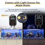 UNIQUE CROSS FLOW TECHNOLOGY - Compared to traditional wave makers, this cross flow pumps generate soft waves and the waves are spread 360 degrees. It creates a water flow similar to real ocean, activates the water in the entire tank, eliminates dead spots, and creates a beautiful fish gathering shape 🐠INTELLIGENT LED CONTROLLER - With LED display controller, you can set it to different modes to simulate natural living environment 1) 5 wave modes available - pulse wave, sine wave, constant wave, random wave, cross flow wave; 2) 30-100 flow rate levels options; 3) 30-100 frequency levels options; 4) feeding mode; 5) night mode; 6) linkage mode 🐠PATTERN WAVE EFFECT - The hygger aquarium wave pump can be installed at different positions in the fish tank to achieve different effects. 1. Installed on the upper side of the fish tank, different wave shapes can be seen; 2. Installed in the middle of the fish tank, you can see a continuous stream of small bubbles, simulating the effect of the ocean. 3. Installed at the bottom of the fish tank, it can blow away debris, remove accumulated water, and keep the tank clean 🐠SUPER SILENT WAVE MAKER - Safe 24V DC powered controllable wavemaker that uses sine wave control technology to quietly transport circulating water, with almost no sound heard during operation. Its powerful magnetic base allows the pump to be easily and freely positioned, tank thickness up to 1/2" 🐠SUITABLE FOR FISH TANKS UP TO 265 GALLONS: 11.1 inches long, 2.4 inches diameter, maximum power: 25W, maximum flow rate: 2380 GPH, suitable for up to 265 gallons of freshwater and marine aquariums. Its rotatable head generates waves from multiple directions, making it perfect for creating a natural environment for aquatic organisms.