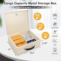 KYODOLED Fireproof Document Box with Key Lock, Safe Storage Box for Valuables, Fire Resistance Security, Fireproof Lock Box for Passport, Cash, Tablet 13.2'' x 11'' x 4.13'' Beige