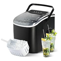 - YSSOA Portable Ice Maker for Countertop, 9 Ice Cubes Ready in 6 Mins, 26lbs Ice/24Hrs, with Self-Cleaning Feature, Ice Spoon and Basket, for Home Kitchen Office Camper RV, Black