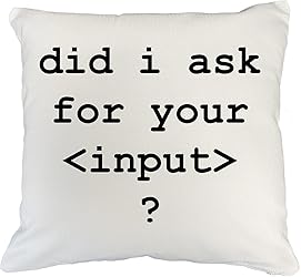 Did I Ask for Your Input? Funny HTML Programming Language Syntax Pillow Cover for A Java Programmer, Computer Scientist, Web Developer, Software Engineer, and IT Professional 20x20 White Throw Pillow