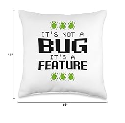 Computer Geek merch It's a Feature Coder Binary Code Throw Pillow, 16x16, Multicolor