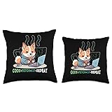 Funny Programming Humor Binary Code Designs Code Fetch Sip Repeat Coffee Binary Shiba Inu Programmer Throw Pillow, 18x18, Multicolor