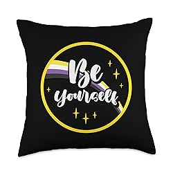 Nonbinary Decor LGBT Non Binary NB Enby Gifts Nonbinary Be Yourself Enby Pride Flag LGBT Women Men Kids Throw Pillow, 18x18, Multicolor