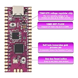 Rich Hardware Interface: For RasPi Pico has 26 x multi function GPIO pins, 2 x SPI, 2 x I2C, 2 x UART, 3 x 12 bit ADC, 16 x controllable PWM channels, on chip clock and timer, temperature sensor, accelerated on chip floating point library, 8 x programmable I/O () state machine, custom peripheral support. Support USB TYPE C Interface: Castellated module allows direct soldering to carrier board, one touch reset function, quick and easy, low power sleep and hibernate modes, drag and drop programming using mass storage via USB. Easy to Use: This for SD2SP2 SDLoad SDL adapter allows a Micro storage card to be inserted into serial port 2. Start your for NGC game or backup from the second serial port for lag full motion video and improved read in of the serial port adapter, for code improvements allow for better read time as the serial port on the game console, and game loading faster. High Performance: For Pico Boot is a microcontroller board based on the for RasPi RP2040 microcontroller chip. It is designed as a one of a kind, high performance microcontroller board with a flexible digital interface. For Pico Boot features two Cortex M0+ cores up to 133 MHz; 256 kb of ; 30 GPIO pins; and a wide range of interface options. Multiple Software Support: For Pico has rich and complete software support, it comes with full compatibility with the official for RasPi C/C++ SDK, Micro python SDK. 16MB of on board QSPI flash memory for code and data storage. Maximum operating current is up to 500 mA.