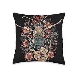 100% Polyester Cool Cute Cockroach Boho Flowers Graphic Art Drawing for Animal Lover. Great Idea for Mom, Dad, Son, Daughter, Brother, Sister, Kids, Uncle, Aunt, Grandpa or Grandmom. 100% spun-polyester fabric Double-sided print Filled with 100% polyester and sewn closed Individually cut and sewn by hand Spot clean/dry clean only