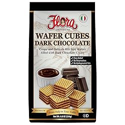 - Flora Dark Chocolate Wafer Cubes, a tempting treat for all chocolate enthusiasts. These delectable cubes are crafted with a rich and velvety dark chocolate filling, enveloped between layers of crispy wafer cookies. Indulge your senses as the smooth, bittersweet dark chocolate melts in your mouth, complemented by the satisfying crunch of the wafer. Each bite offers a harmonious balance of flavors and textures that will delight chocolate lovers. Whether enjoyed as an afternoon pick-me-up or paired with a cup of coffee, Flora Dark Chocolate Wafer Cubes are the perfect indulgence for those seeking a moment of pure chocolate bliss. Flora Dark Chocolate Wafer Cubes are filled with intense dark cocoa cream and wrapped in crisp, oven-baked wafers. A bold Italian snack perfect for lovers of rich chocolate flavor. Made in Italy with no hydrogenated fats.