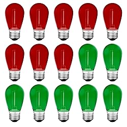 - S14 Colored LED String Light Bulbs,1 Watt Plastic Shatterproof Waterproof Outdoor Indoor Replacement Bulbs for Home Decor, E26 Medium Base, Red Green Light Bulbs, 15Pack
