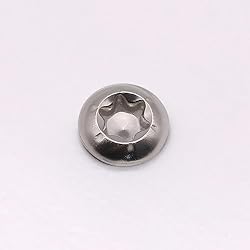 Thread Size: 6mm; Screw Length (thread and the tip point part): 16mm (not including the head) Torx Drive Size: T30; Package Included: 30 Pcs Button Head Torx Drive Sheet metal screws have more points of contact than phillps, slotted, square drive screws, which allows you to apply extra force with less slippage or damage to the recess. Diameter of the Head: 10.5mm; Height of the Head: 3.2mm Material: High Quality 304 Stainless Steel 18-8, great strength and good corrosion resistance to make fasteners last!