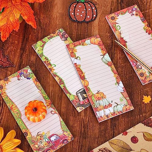 - Fall Design - Our notepads come in 4 different fall designs, including pumpkins, maple leaves, sunflowers, turkey and other autumn elements, novel and beautiful, perfect as a decoration on the refrigerator, but also a good assistant to record lists as memos.