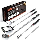 Telescoping Magnetic Pickup Tool Set with 1 & 15 lb Pick Up Sticks, Round and Square Adjustable Inspection Mirror and Flexible LED Flashlight, Valentines Day Gifts for Him Adults, Gifts for Men