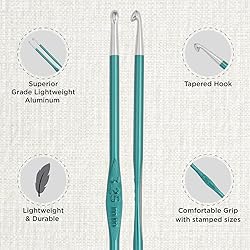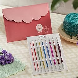 Deluxe Set Includes: KnitPro Zing Deluxe Single-ended Crochet hooks are available in 9 popular color-coded sizes, ranging from US size 2mm to J (2mm to 6mm) perfect for basic crocheting, amigurumi, or toy making, etc. These are great for traditional and modern crochet projects. Superior Grade Lightweight Aluminium: Manufactured from superior-grade lightweight aluminium, KnitPro Zing Single-ended crochet hooks are feather-light and run effortlessly through all kinds of yarns without causing discomfort or hand fatigue. Smooth Finish: Zing single-ended crochet hooks feature a satin-smooth finish, making them ideal for hours of comfortable crocheting. The yarn glides effortlessly through the crochet hooks without snags or pulls and helps create beautiful crochet projects. Easy to Hold: KnitPro Zing single-ended crochet hooks are smooth and comfortable to touch; they nestle comfortably in your hand and give the ease of crocheting. Each single-ended hook has an easily identifiable size stamped on the handle that doubles up as a thumb grip while crocheting. Aesthetic and User-Friendly Packaging: This set comes in an aesthetically designed fabric case for easy storage and organization of crochet hooks. The bright hue on the case and the adorable sheep motif add a touch of playfulness to your crocheting.