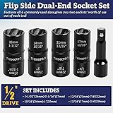 【Double-Sided Design】Engineered with an innovative flip dual-head design, Thinkpro locking lug nut removal tool offers quick size selection and enhanced leverage, making the lug nut extractor perfect for tire removal, brake servicing. 【Conquer Any Challenge】 Easily remove damaged bolts, nuts and screws without damaging fastener edges, and lug nut removal’s compatibility with 1/2-inch drive impact wrenches, air ratchets, or breaker bars provides versatility for various applications. 【Uncompromising Quality】Made from high-carbon CR-MO steel and coated with a durable black oxide layer, our wheel lock removal kit guarantees exceptional strength, an extended service life, and superior corrosion resistance, even in the toughest conditions. 【Various Sizes for Choose】Our lug lock removal tool covers some of the more common sizes. Featuring a 1/2" square drive, it fits perfectly in the following sizes: 11/16" (17mm) - 3/4" (19mm), 13/16" (21mm) - 7/8" (22mm), 15/16" (24mm) - 1" (25mm) and 1-1/32" (26mm) - 1-1/16" (27mm). 【Easy Storage Portability】Each emergency wheel lock remover comes with laser-marked size information for quick identification and organization, and a easy carrying case helps to take it with you in your vehicle conveniently.
