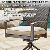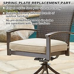 - Are you still throwing away your rocking chair because the fiberglass spring tabs are damaged? Use our products now! Save money and time with fun by repairing your patio chair yourself, prolong the lifespan of your patio furniture, improve the value of your lawn furniture while protecting your investment. Features The patio swivel chair parts are made of sturdy fiberglass rocker arm spring board components, which are reliable and stable, wearproof and weatherproof, suitable for outdoors. These patio chair rocker spring parts are universal size, suitable for many different brands of outdoor furniture; The holes are not drilled, so it can be made to fit any compatible chair. Easy to Install: first, remove the old spring mat from the chair and use it as a template to drill holes for the patio replacement parts; Then put them in just like the old ones came out; Wear protective gloves and glasses when drilling glass fibers. Specification: Dimension: 5" x 2.5" x 0.25” Weight: 0.22 lbs per each plate Material: Fiberglass Color: Black Package include: 10 x Patio Rocking Chair Spring Plate