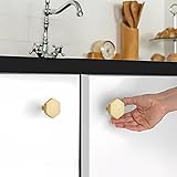 - Sturdy & Long-lasting Cabinet Knob - Our gold cabinet knobs is made of solid zinc alloy. The sturdy drawer knobs will not easily scratch or fade off, which is long-lasting for decorating cabinets. 、 Modern Hexagon Shape - These hexagon drawer knobs with tight connection and deep screw thread make your cabinets look modern and elegant, which are ideal knobs for dresser drawer, kitchen cabinet door, bathroom drawers, bedroom cabinets door, closet doors, etc. Wide Application on Different Scenes - These modern kitchen cabinet knobs worked perfectly in your kitchen, bathroom or other cabinet renovation, you will get a new home with classic and simple look. Easy Installation - With detailed installation instructions, the installation for cabinet knob is easy and fast. Each cabinet knob come with two different sizes of screw (1*25mm screws and 1*44mm detachable screws which can be break into 6 different lengths). Cabinet Knob Size - Width: 1-1/4 inch (32mm), Base Diameter: 5/16 inch (9mm), Heights: 7/8 inch (23mm)