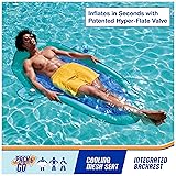 - This hammock-style pool float features a soft cooling mesh that keeps your body just below the water's surface to keep you comfortably cool for hours of relaxation and fun on hot summer days. The oversized inflatable pillow supports your head and neck so you can keep your head and hair mostly dry while the cares of everyday life drift away, and the two cupholders allow you to bring your favorite drinks on the water so you can sip and float. Our patent-pending Hyper-Flate Valve minimizes direct contact while maximizing airflow, allowing for easy inflation in a fraction of the time. Deflate just as quickly by inserting the tail of the valve cap. The bright aqua blue design adds a pop of color and style to your outdoor pool space. This pool float folds down flat into three compact circles and includes a reusable carry bag for easy portability and storage, making it great for trips to the pool or travel. The SwimWays Spring Float SunCatcher Pool Lounge Chair measures 68 in x 50 in x 6 in when fully inflated and supports most adults up to 250 lbs.