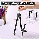 - Mr. Pen compass is meticulously designed for enhanced accuracy and precision in geometric drawings.With a robust metallic construction complemented by black accents, this compass is as durable as it is aesthetically pleasing.It boasts an adjustable design that can create circles up to 11 inches in diameter, catering to a wide range of drafting needs.The set includes 2 matching pencils, ensuring users always have the right tools on hand for sharp and consistent line work.Its versatile functionality makes it an indispensable tool for both students mastering geometry and professionals in technical fields.