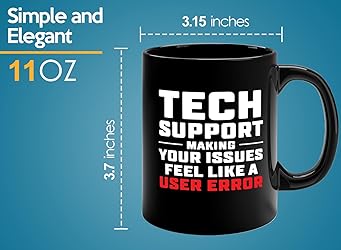- Having our technical support novelty coffee mug is a must-have for your software support! This technical assistance saying mug comes in 11oz and 15oz capacity. Dishwasher and microwave friendly with ceramic material and premium cybersecurity support typography design made by professional graphic designer. Suits well for graduation, job promotion, farewell coworker, christmas day, birthday, thanksgiving, anything! Say goodbye to fumbling with your coffee mug! Our IT support Mug features a comfortable, easy-to-grip handle that ensures you can keep your coffee secure, even when you’re on the go. Plus, with a long-lasting image printed on the mug, you’ll be able to enjoy your morning brew in style, no matter where your adventures take you! You can give this hardware support mug as a gift to your tech support work bestie birthday, family, best friend, colleague, a treat for yourself, or anyone you want to captivate their busy life or just to see them giggling! Come and get yours now!