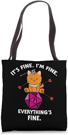 It's Fine RPG Gamer Cat D20 Dice Fail Funny Nerdy Geek Tote Bag