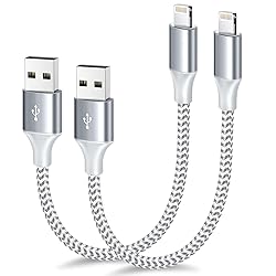 - Experience convenience and durability with our 2-pack of compact, 1-foot Lightning cables. Featuring fast charging up to 2.4 amps and data sync capabilities, these MFi-certified cables are built to last with nylon braiding and a compact design, perfect for travel or home use. Compatible with a wide range of iPhones, iPads, and iPods, these silver cables ensure reliable connectivity and efficient charging.