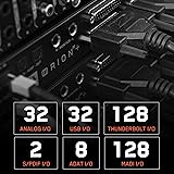 RELIABLE CONNECTIVITY: This audio interface for PC and Mac delivers 32x32 channels of analog I/O with 130dB dynamic range, plus dedicated monitor outputs for studio-grade recording and monitoring with precision. THUNDERBOLT PERFORMANCE: This music recording equipment streams 128 channels via Thunderbolt 3 at up to 192kHz or 32 channels through USB, enabling music production equipment setups with ultra-low latency response for studios. ADVANCED CLOCKING: AFC 64-bit clocking technology eliminates jitter and timing errors, ensuring your music production equipment captures every nuance with clarity and phase accuracy. Functions as an audio interface for PC with exceptional precision. FLEXIBLE ROUTING: The built-in signal routing matrix allows custom configurations while the monitoring calibration system supports multi-channel and Atmos workflows in your studio equipment setup with ease. COMPREHENSIVE I/O: This USB audio interface includes MADI optical connectivity supporting 128 channels at 48kHz, plus ADAT and S/PDIF ports for expanded integration with your interface for recording music.