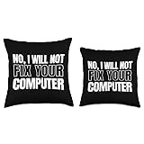 100% Polyester No, I Will Not Fix Your Computer - This is a funny design for a computer engineer. Ideal for a person who works in the field of computer engineering, the science of designing and maintaining software and hardware. Great for a software engineer, computer programmer, computer technician, or software engineer. Ideal for a developer, computer scientist, or anyone who manage a company's computer hardware and software systems. Amazing on Systems Engineer Day. 100% spun-polyester fabric Double-sided print Filled with 100% polyester and sewn closed Individually cut and sewn by hand Spot clean/dry clean only